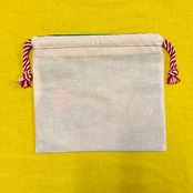 “PACHI PACHI”とドリンク片手にびっくりしているしろねこくんのステンシル巾着です