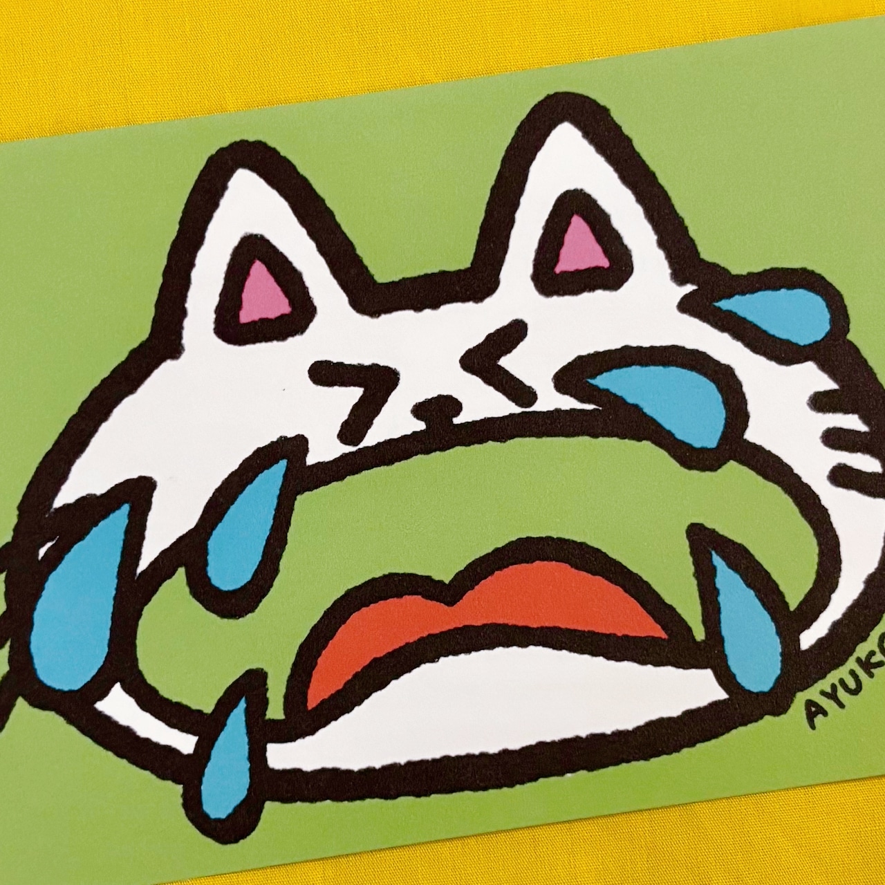 ・大粒のなみだを流して、泣いているしろねこくん。