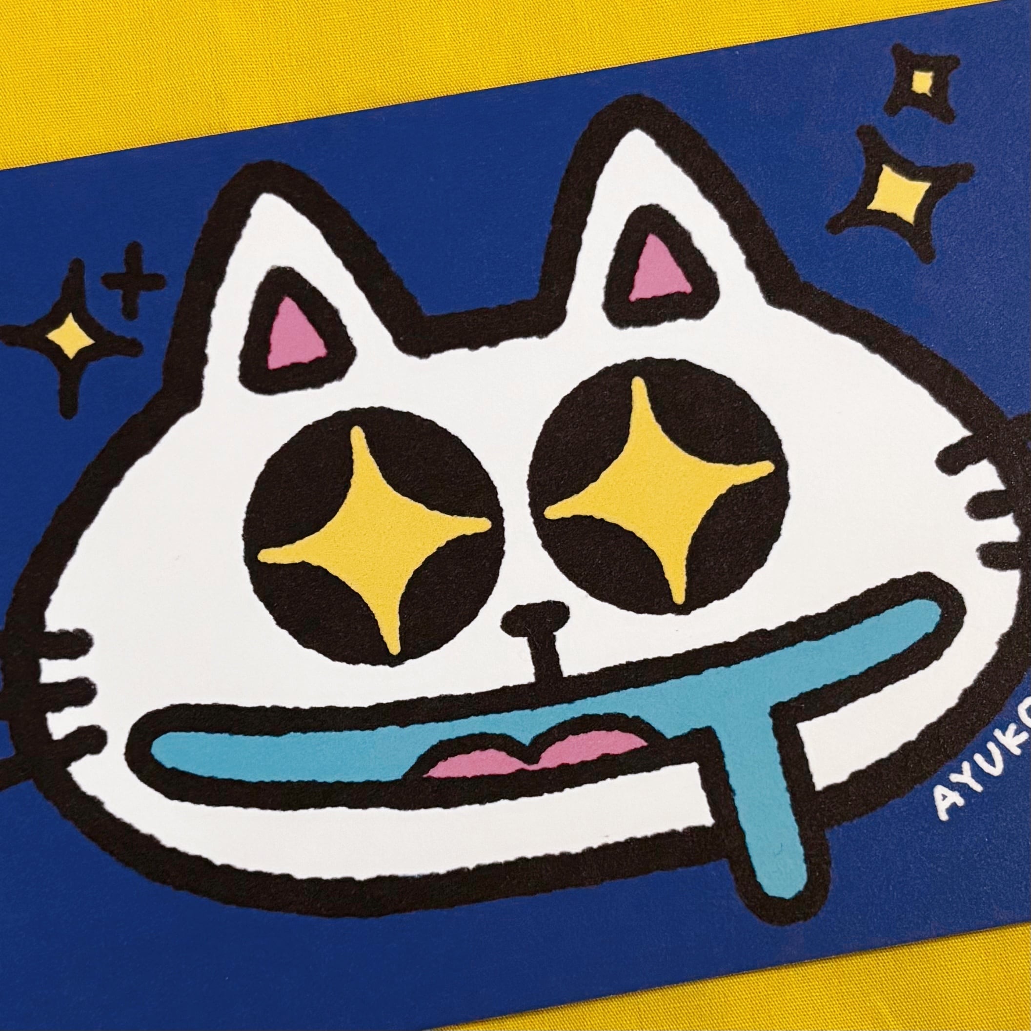 ・なにか美味しそうなものを見つけたのか、よだれをたらして目をキラキラさせているしろねこくん。
