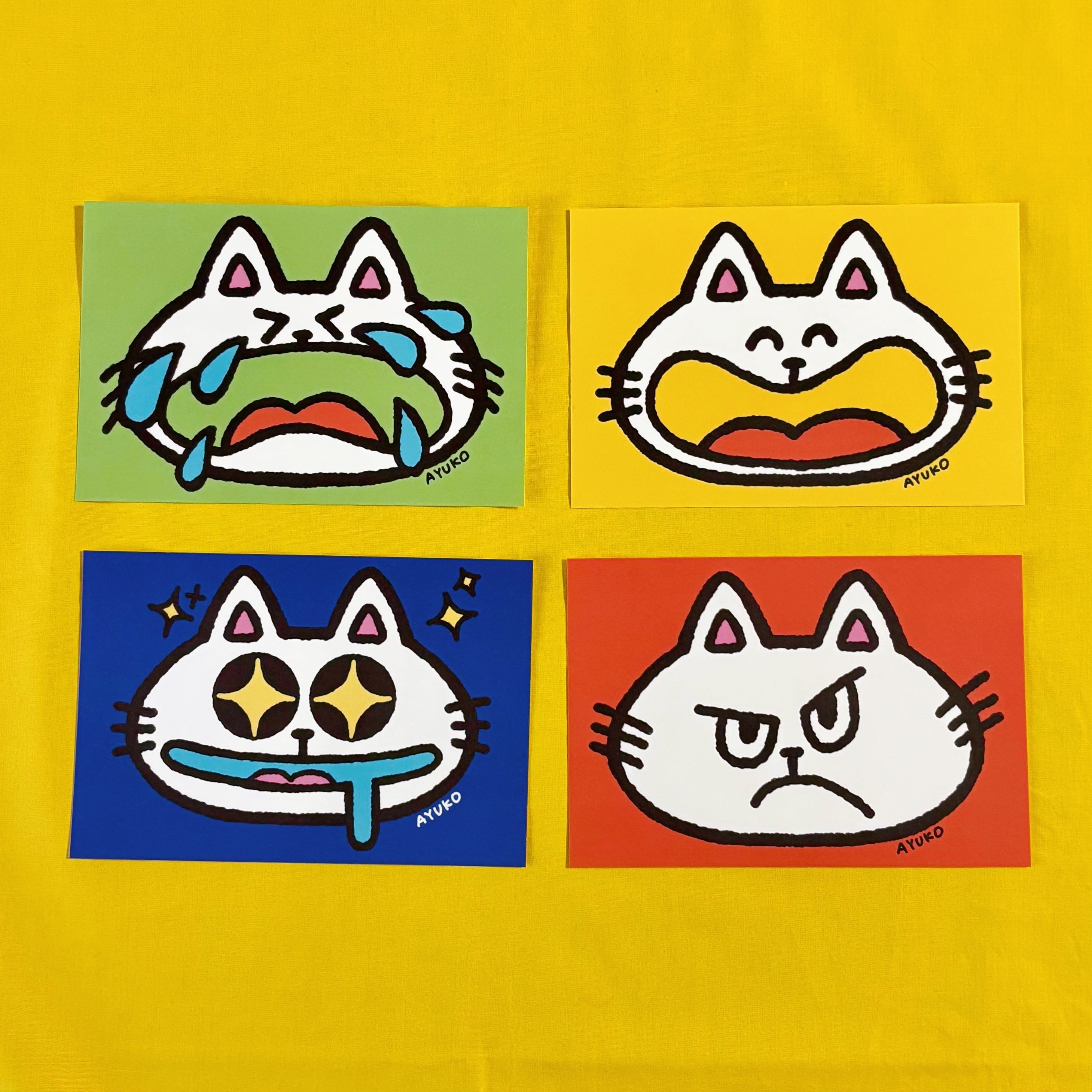 喜・怒・哀・楽をテーマにした、4枚セットのポストカードです。